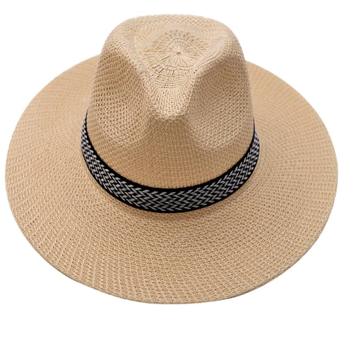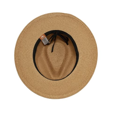 Combining elegant style with practical sun safety, this breathable paper-straw fedora includes an adjustable sizing tie to ensure a secure fit during outdoor gatherings.