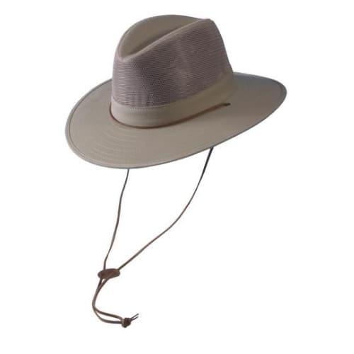 Many of the performance and outdoor models, such as the UV Sun Bucket and Expedition Boonie, include a removable or adjustable chin strap with a toggle to keep the hat in place on windy days.